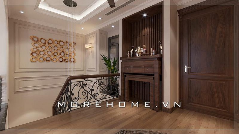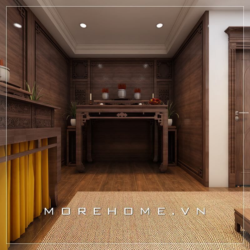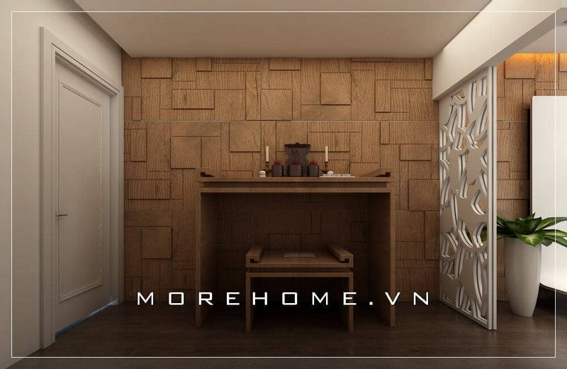 Mẫu bàn thờ gỗ sồi cao cấp cho nhà chung cư, nhà phố với thiết kế đơn giản nhưng không kém phần tinh tế sang trọng được ưa chuộng tại morehome