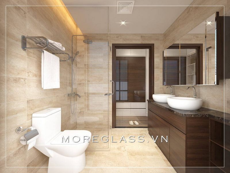 Mẫu thiết kế nhà tắm bằng kính hiện đại giúp phân chia không gian và ngăn nước bắn ra khu vực xung quanh