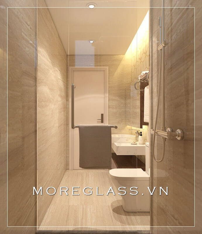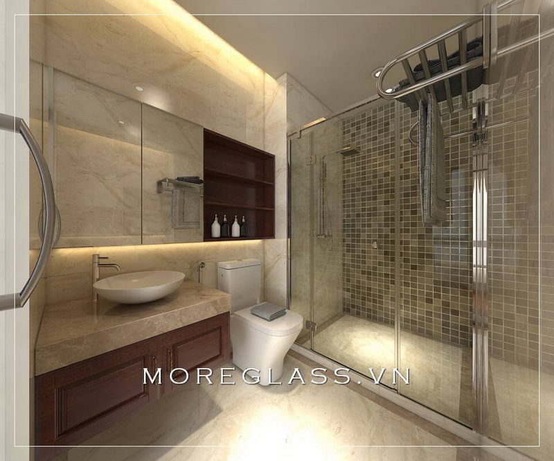 Mẫu thiết kế nhà tắm kính đẹp có vẻ đẹp tinh tế, sang trọng nhưng không làm cho phòng tắm nhỏ trở nên bí bách.